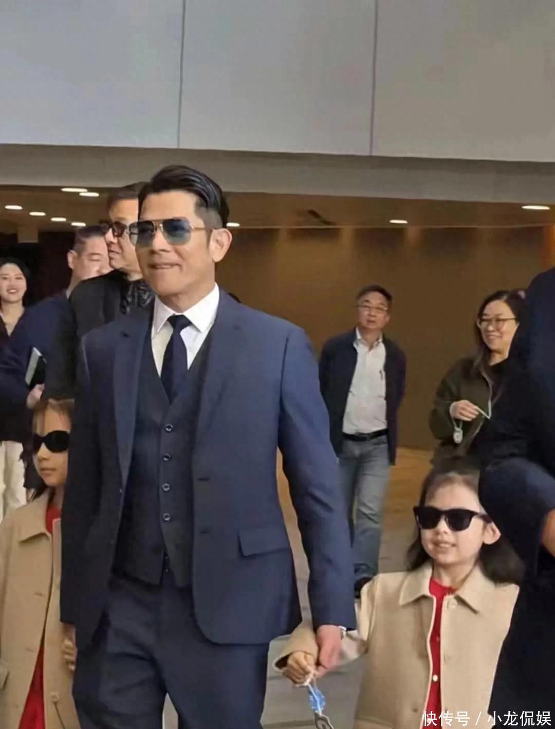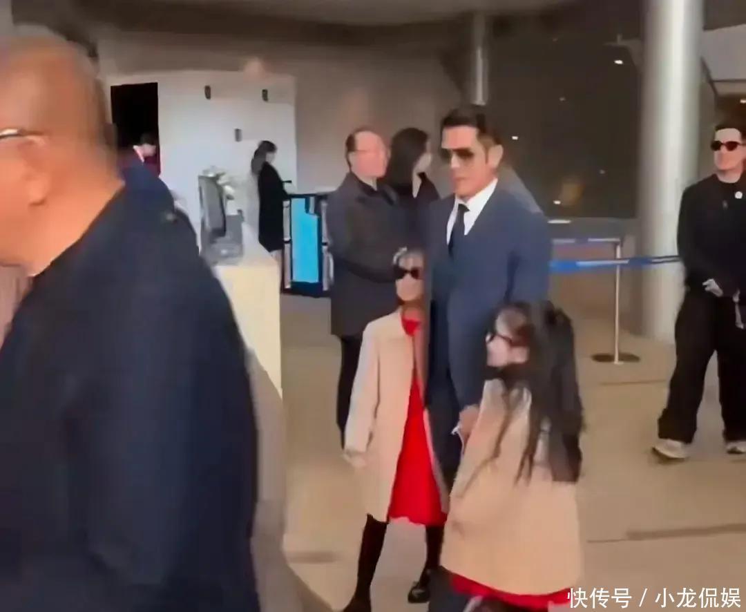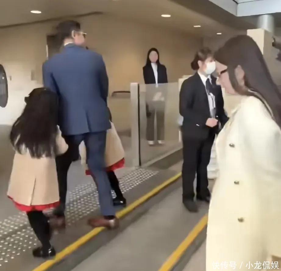 他全程一手牵着一个女儿,掌心紧握的样子满是父爱,对着工作人员鞠躬道谢时礼数周全,转头教女儿们挥手打招呼又秒变温柔慈父。