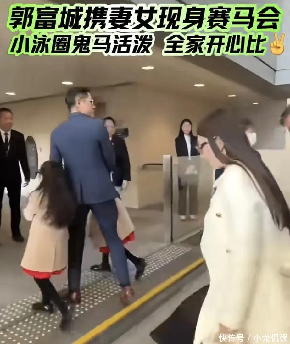 郭富城结束西安奥体中心体育馆的巡回演唱会,就急忙赶回香港,落地香港就换上了精心准备的行头,带着老婆方媛两个女儿,和岳父岳母一起现身沙田马场观看比赛 。